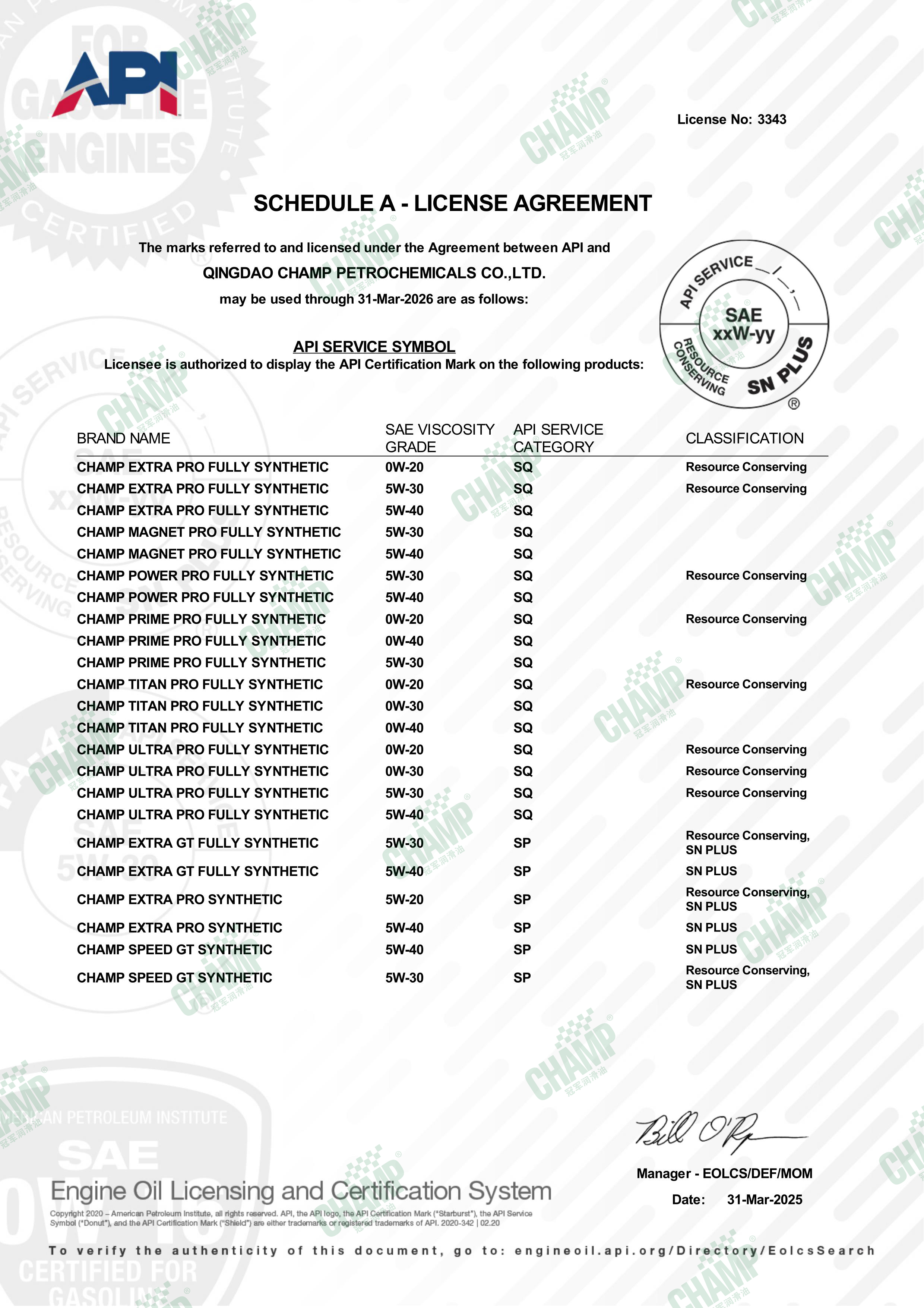 冠軍嘉能5W-40 SQ A3/B4酯類長效全合成機油,更低揮發(fā),更高保護!