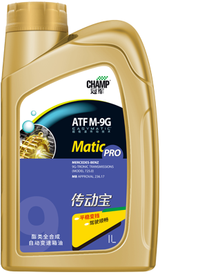 冠軍傳動寶ATF M-9G是高性能的酯類全合成自動變速箱油,是特別為滿足新一代奔馳9擋自動變速箱 (MB 725.0) 的燃油經(jīng)濟(jì)性要求而設(shè)計的一款超低粘度酯類全合成自動變速箱油,可提供出色的換擋操控性和節(jié)油性能。