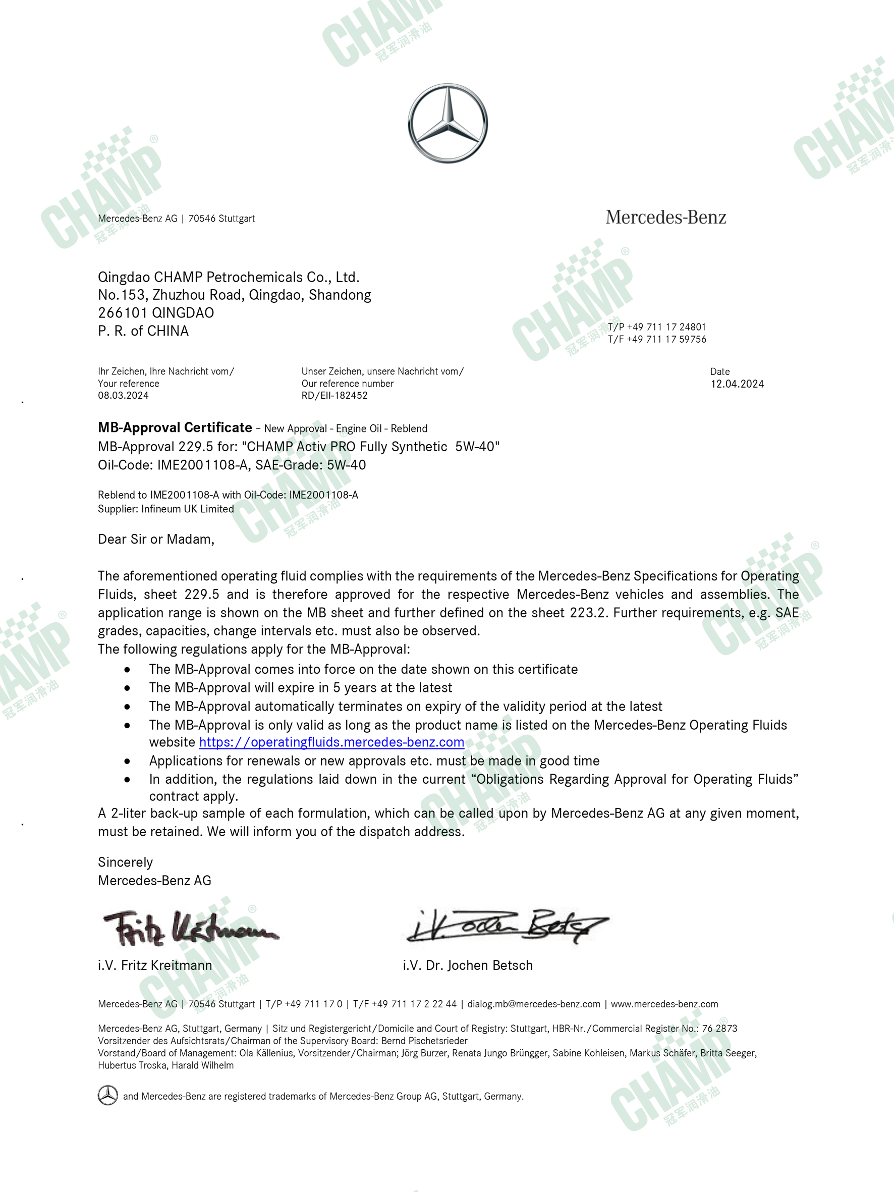 ◆ 奔馳MB-Approval 229.5認(rèn)證